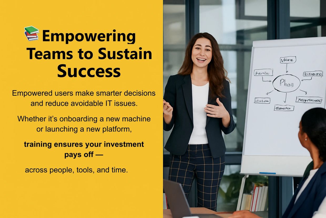 🧠 Empowered users make smarter decisions and reduce avoidable IT issues. Whether it’s onboarding a new hire or launching a new platform, training ensures your investment pays off — across people, tools, and time.